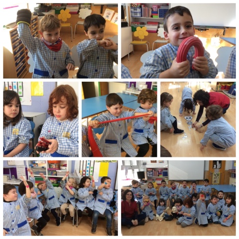 També ens ha portat materials per observar els óssos i estris diversos:pilotes, peses...Finalment hem fet un puzzle de l' esquelet i ens ho hem passat molt bé amb els embenatges que ens ha posat.